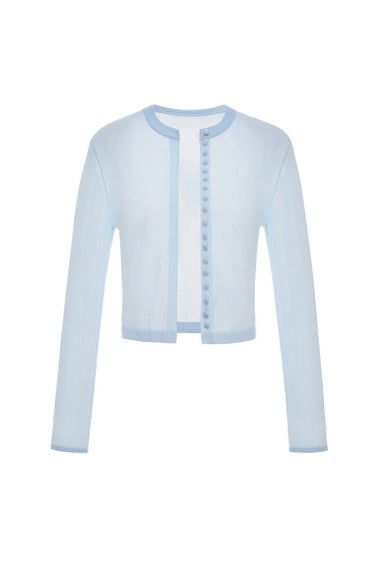 Blue Button-Up Crop Cardigan