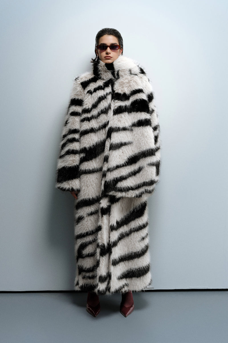 Matière : fausse fourrure zèbre (80 % polyester / 20 % acrylique)