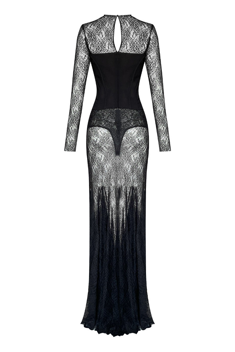 - Haut en dentelle transparente, corsage structuré, ourlet maxi fluide, fermeture éclair invisible au dos