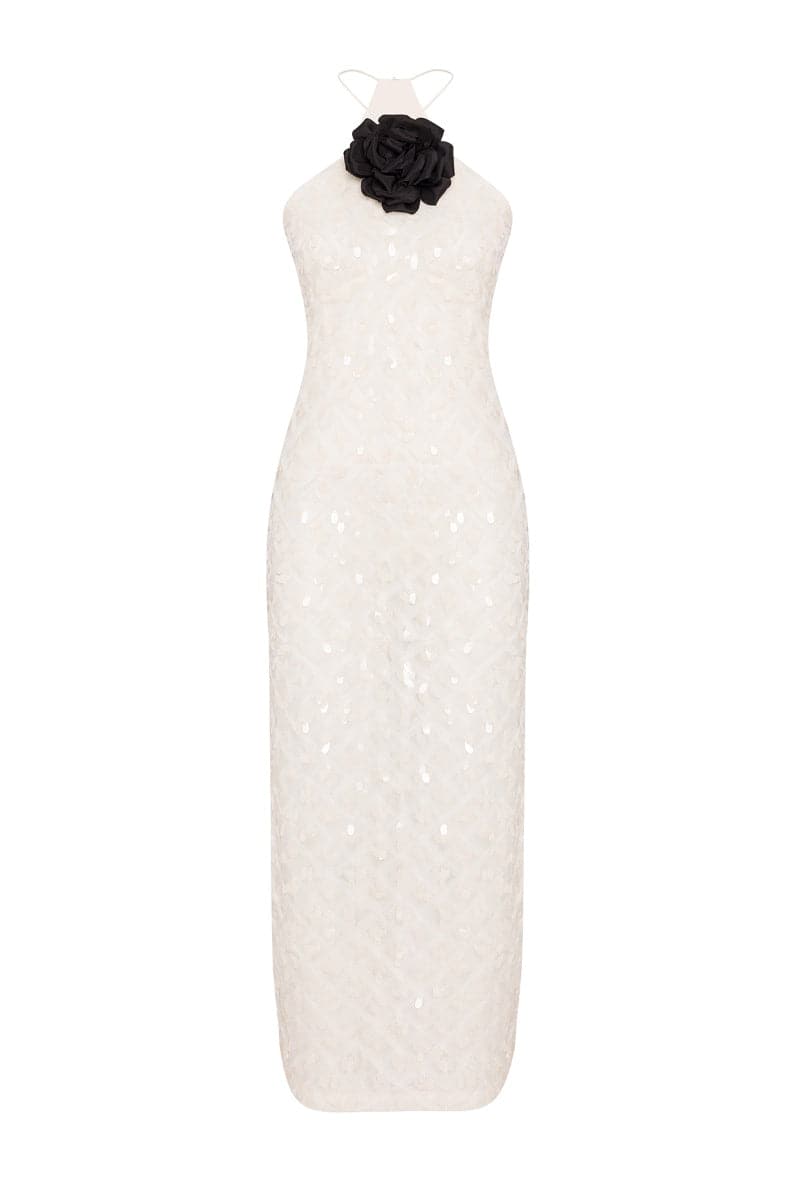 Confectionné en tulle à sequins pour épouser votre silhouette, ce modèle Aya présente un décolleté dos nu plongeant.