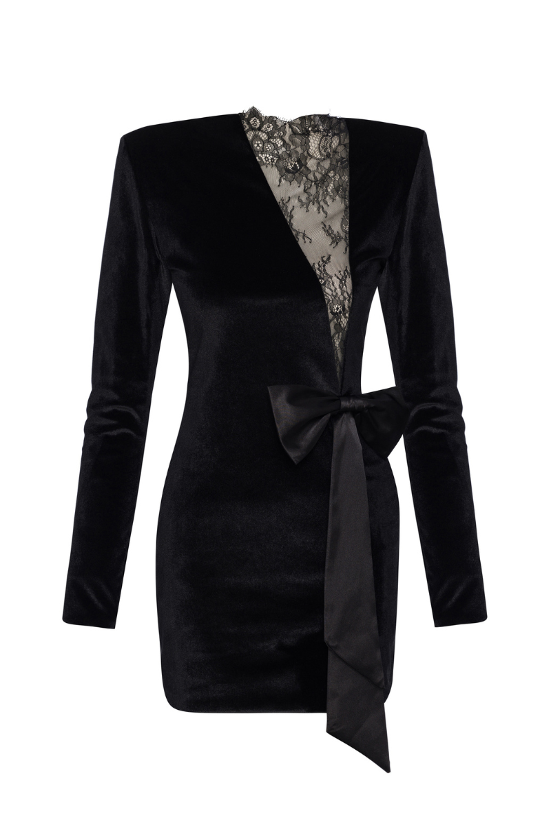 robe mini en dentelle velours noire molly