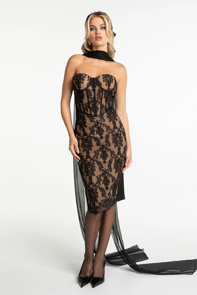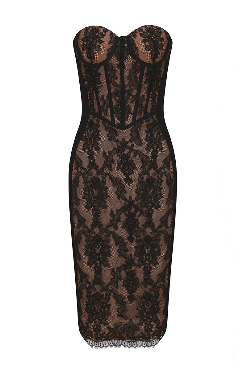 Adoptez l'élégance avec la robe Elsa, dotée d'un haut tube chic rehaussé de petits coussinets d'allaitement amovibles pour un confort personnalisable. L'ajout d'anneaux en acier élégants rehausse le look, tandis qu'une ligne de séparation en forme de V à la taille ajoute de la définition. Fabriquée à partir de dentelle à brins entièrement faite à la main, la broderie tridimensionnelle complexe met en valeur une qualité et un raffinement supérieurs. La taille à chevrons se resserre magnifiquement, avec la dentelle élégamment rentrée à l'avant pour une silhouette flatteuse. Le tissu tricoté épissé crée un effet amincissant, offrant un excellent rebond pour une tenue confortable et ajustée. Doublée de maille couleur chair pour la respirabilité et une translucidité sexy, cette robe est aussi pratique qu'éblouissante. L'ourlet du bas est doté d'une délicate dentelle à cils, tandis qu'une fermeture éclair pratique en tissu au milieu du dos assure un enfilage et un retrait faciles sans compromettre la sécurité.