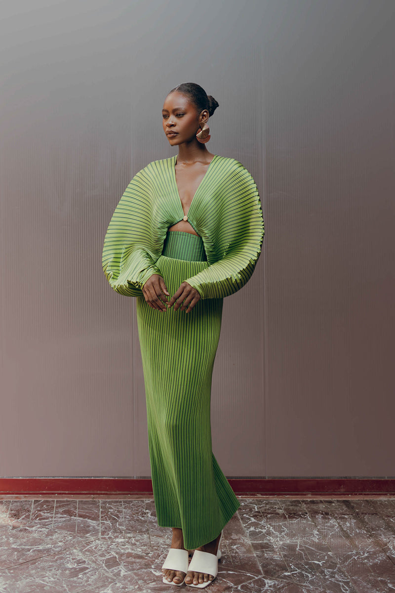 haut court plissé balu à rayures émeraude