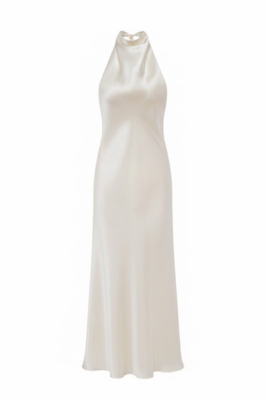 deniz butter-cream halter-neck silk-satin midaxi dress