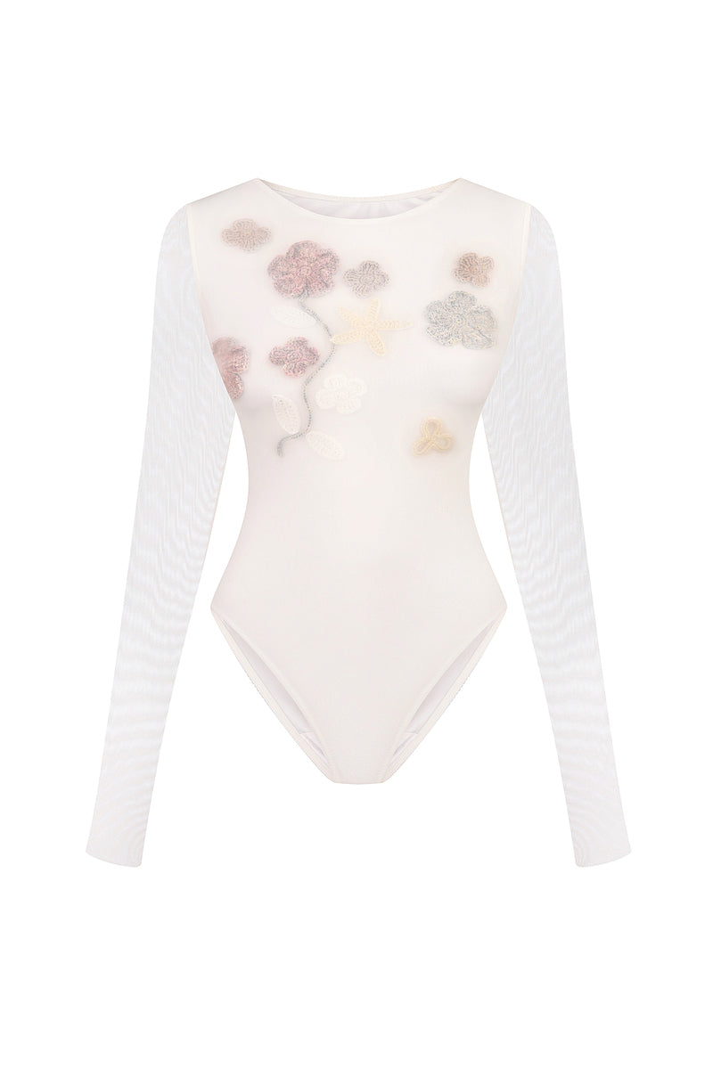 - Body ajusté exclusif inspiré de la mariée avec manches longues transparentes
