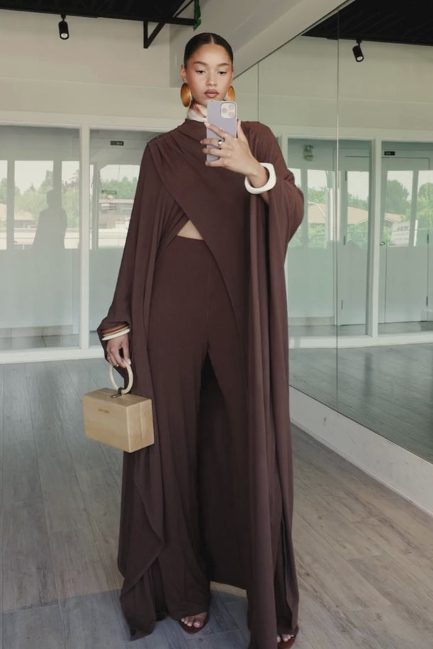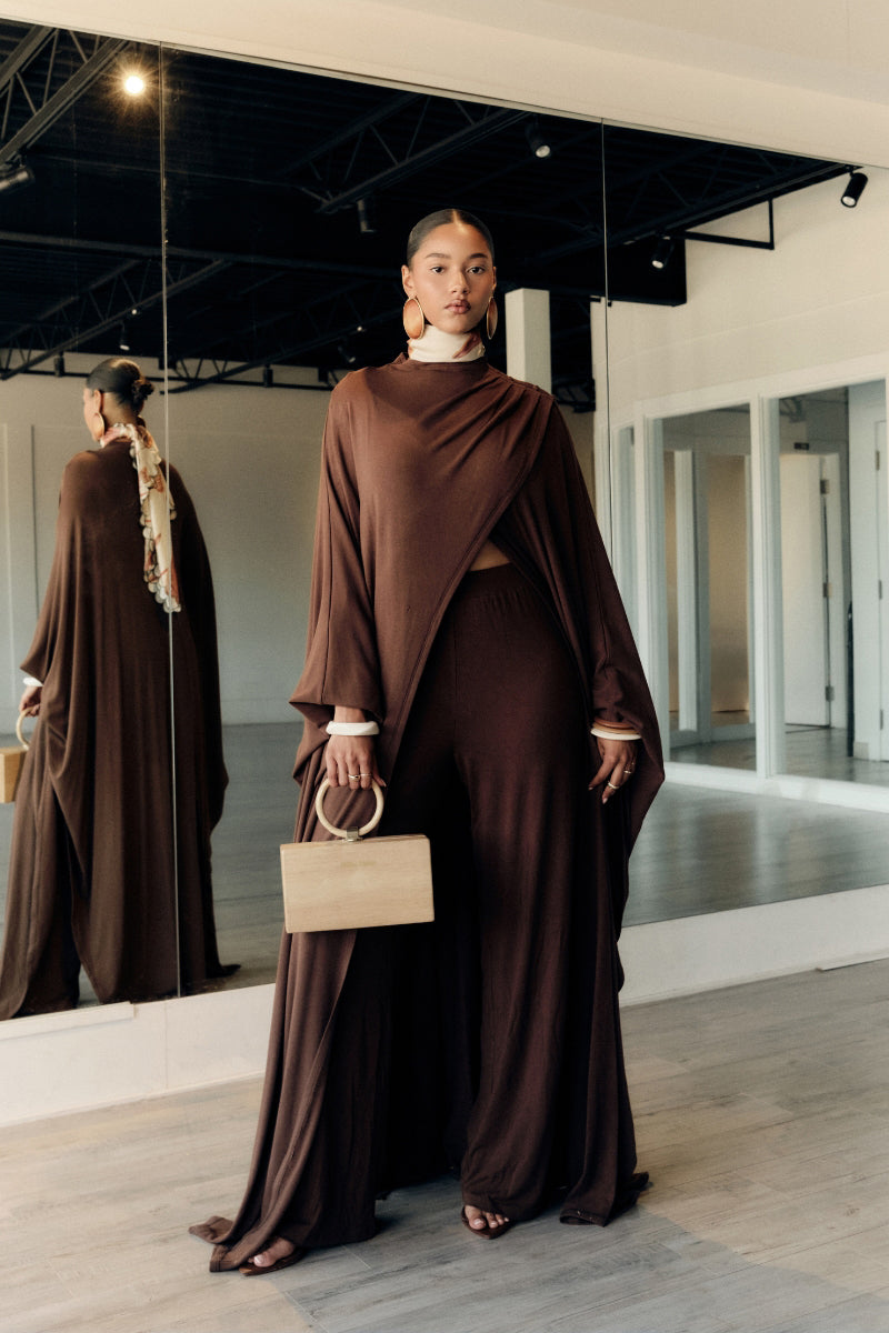 La cape en maille Ovu est une pièce sophistiquée et polyvalente à superposer, qui dégage une élégance naturelle.