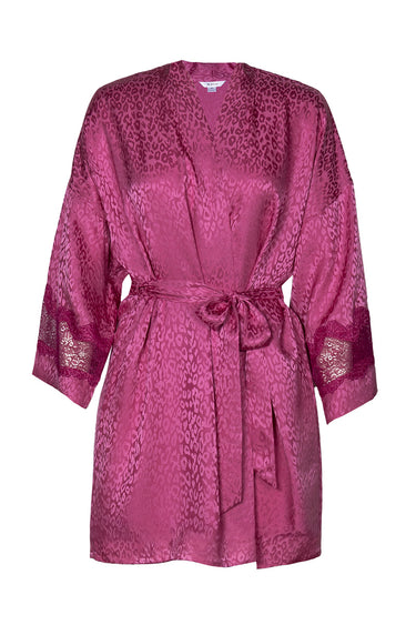 Elevate your travel experience with the perfect mix of comfort and luxury. Crafted in silk jacquard with a subtle leopard print, the Sydney Short Robe is the ultimate companion for both lounging at home or as a part of your travel wardrobe. Whether you're unwinding in a seaside folly or exploring new horizons, this robe is perfect for making every moment feel like a luxury retreat.