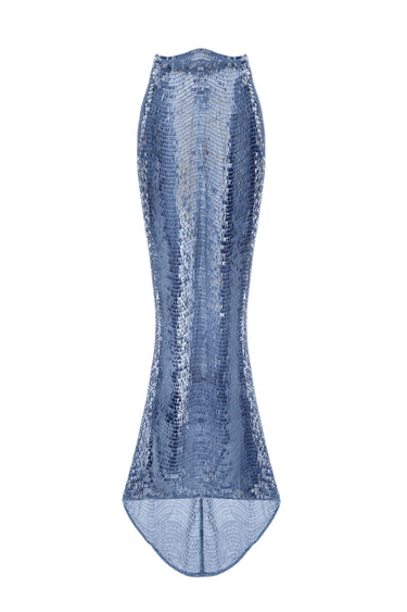 Une élégante jupe longue à sequins qui souligne délicatement la silhouette et crée une ligne raffinée. Le tissu scintillant apporte une touche festive, tandis que sa longueur jusqu'au sol confère une allure plus sophistiquée. Elle se marie parfaitement avec un bustier ou un chemisier classique.