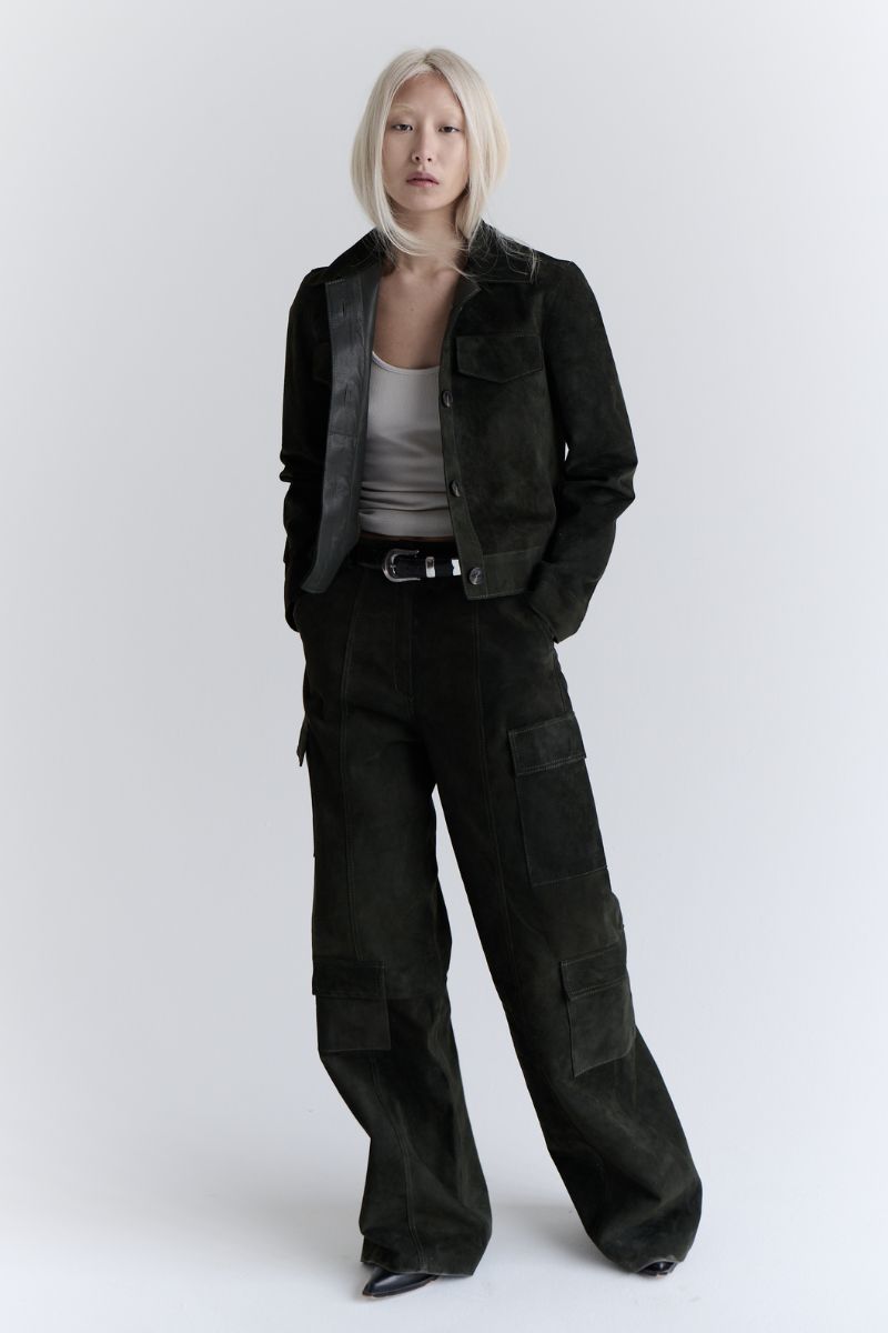 - Pantalon en daim vert foncé