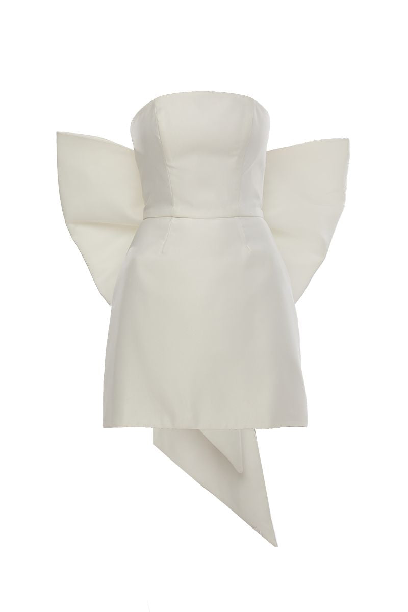 Rehaussez votre garde-robe avec cette luxueuse mini-robe JOY WHITE dotée d'un haut corseté, d'un gros nœud amovible et d'une mini-jupe entièrement doublée.