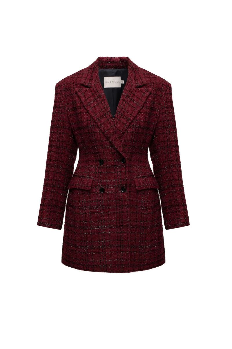La robe blazer midi PETRA en tweed bordeaux est un hommage à l'élégance moderne et à la force intemporelle. Confectionnée dans un tweed riche et texturé d'un rouge bordeaux profond, cette robe allie une structure classique à une féminité naturelle. Les épaules structurées, la taille cintrée et l'élégante longueur mini mettent en valeur la silhouette avec une assurance discrète, tandis que la teinte bordeaux apporte profondeur, richesse et une touche de sophistication subtile.