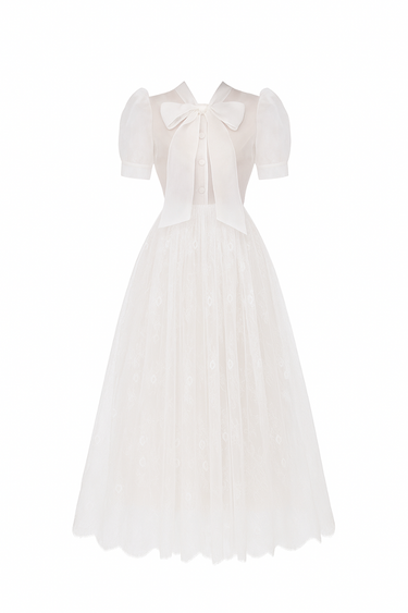 - Manches bouffantes transparentes avec finition en dentelle délicate