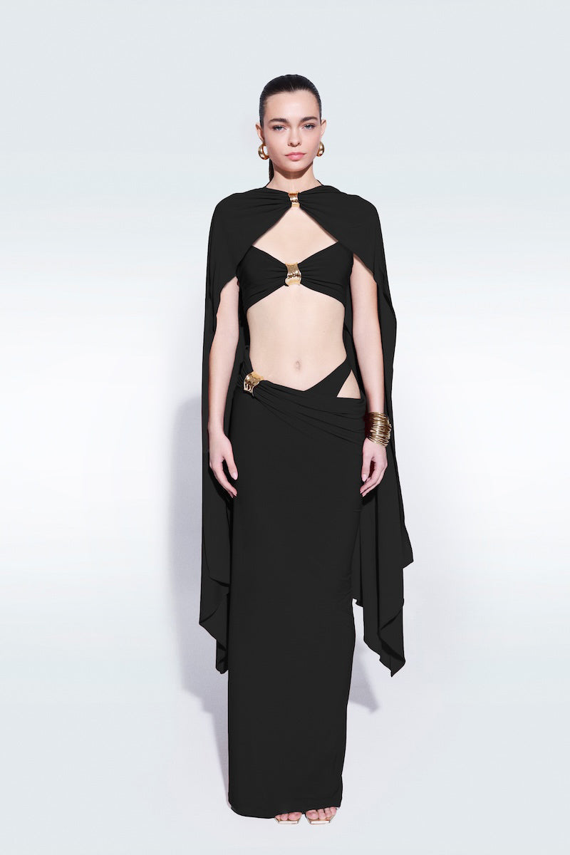 jupe longue drapée noire
