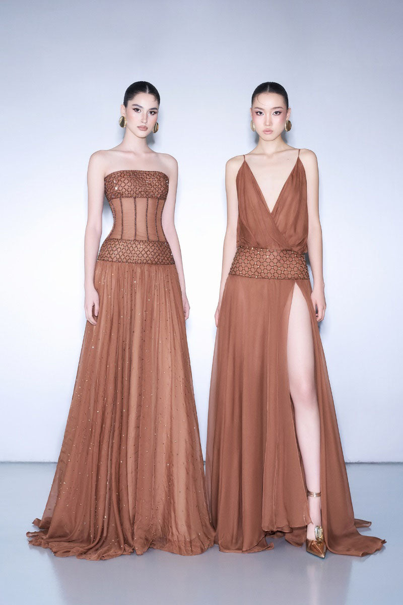 CEM transpose le savoir-faire vietnamien dans l'univers du glamour, créant des pièces artisanales spectaculaires selon des techniques de tissage traditionnelles. Signifiant « Sœurs Amies », la marque reflète l'attention, la fierté et la complicité qui imprègnent chacune de ses créations. On adore CEM pour son équilibre parfait entre simplicité et sophistication, et sa capacité à apporter une touche d'éclat incomparable aux occasions qui méritent d'être mémorables.