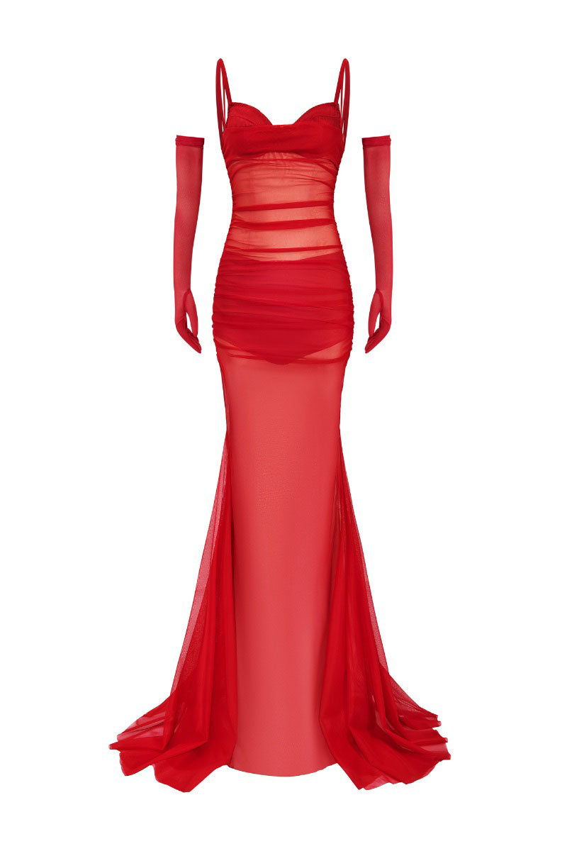 robe maxi rouge en chiffon à dos d'assise