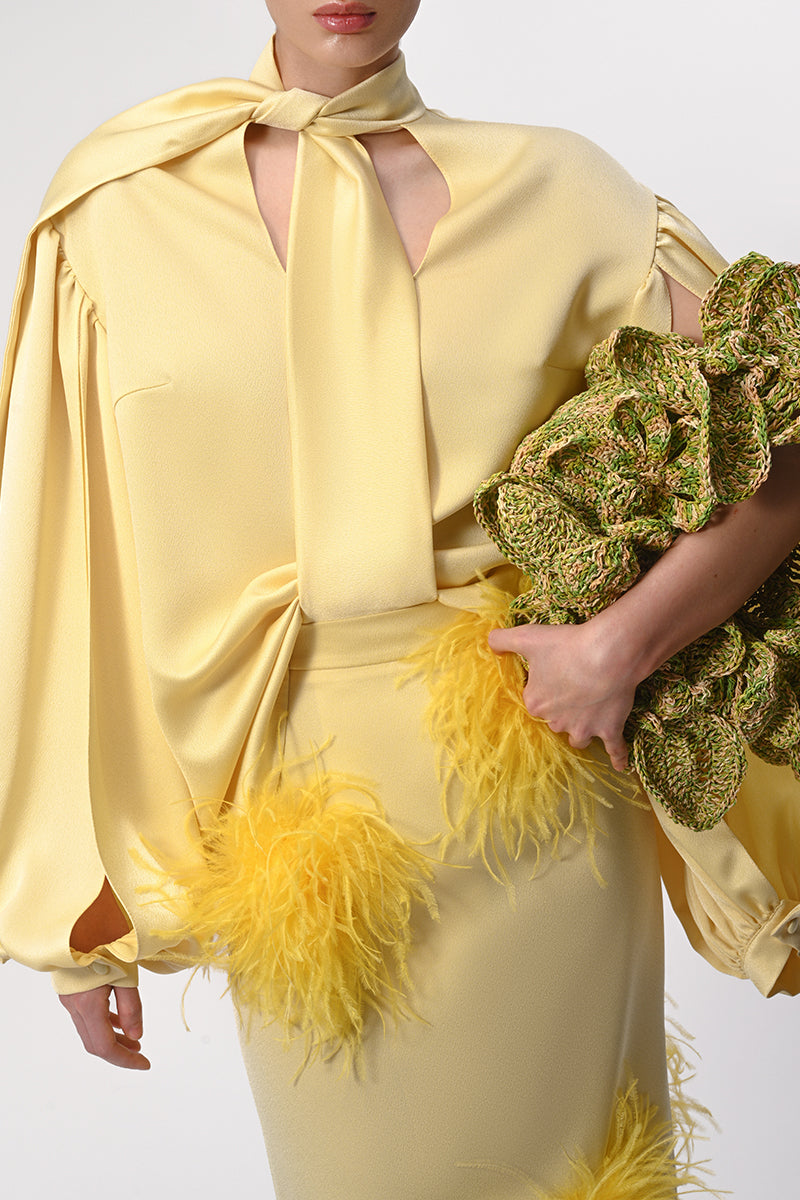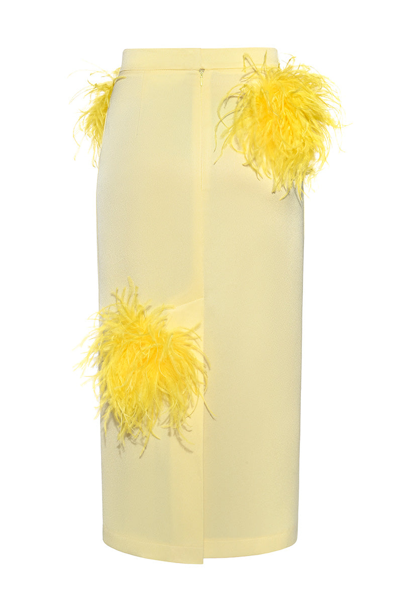 butter yellow pencil skirt with feather details