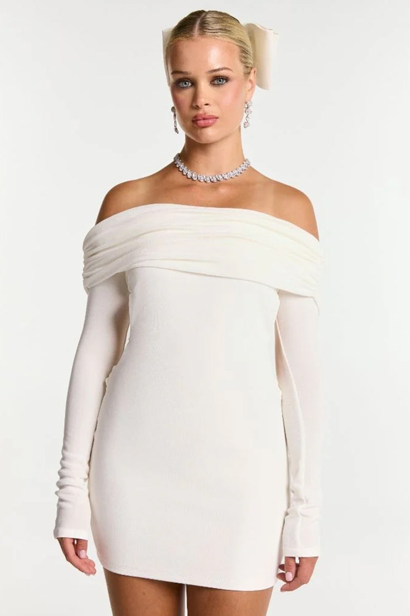 The Chantel Dress is a stunning one-shoulder piece crafted from knitted stretch acetate fabric, offering both comfort and style. Designed with a non-slip strap at the chest for secure wear, this dress combines elegance and functionality. Its folded one-shoulder detail and wrinkle technology add depth and texture, while the open-back design, adorned with thin elastic straps and satin bows, brings a touch of romance. The back's draping enhances the dress's graceful movement, making it the perfect choice for any special occasion.
