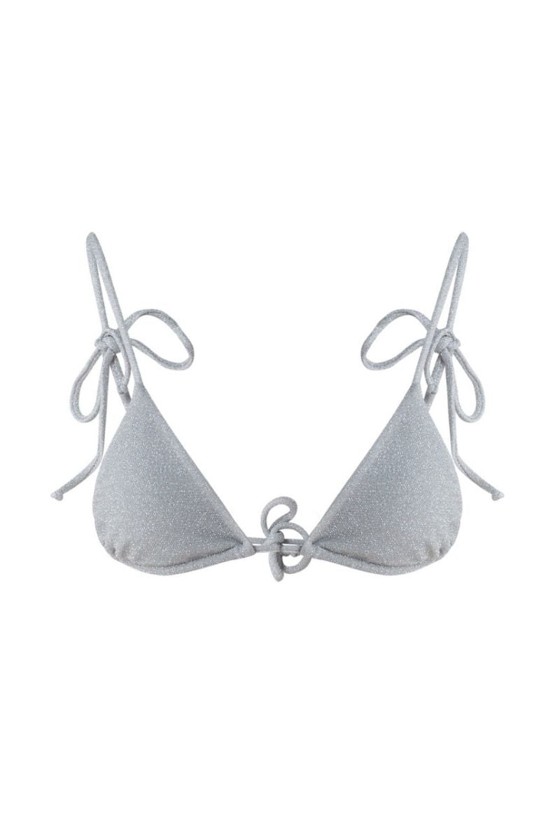 Claudia Bikini Triangle comes in one color, top features self-tie straps on the bikini top that are adjustable. Cut from sparkly swim lurex fabric and is fully lined.