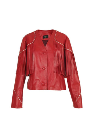 dalida red fringed leather jacket
