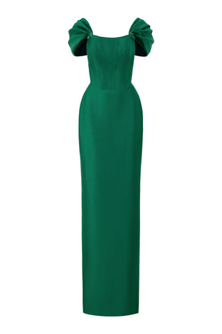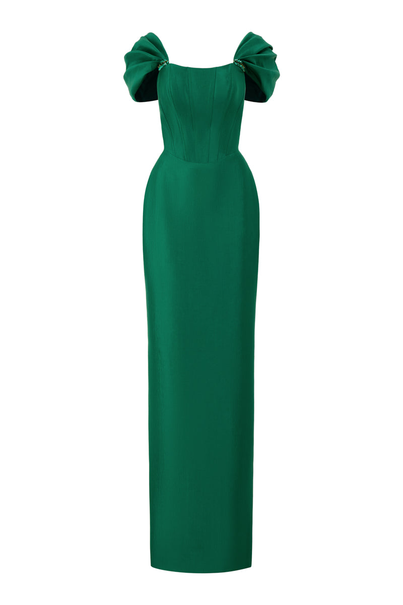 emerald column evening gown