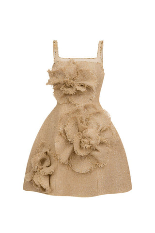 floral tweed mini dress in beige