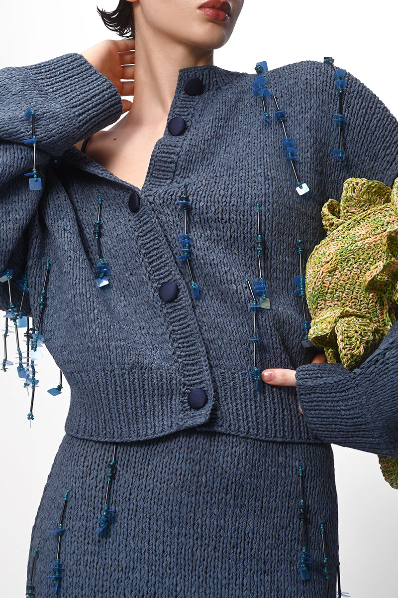 Tbilisi-based twin sisters, Lalo and Nina Dolidze, launched Lalo Cardigans in 2012 by employing local master craftsmen to hand stitch bright, braided cardigans in the traditional Georgian knitting technique.