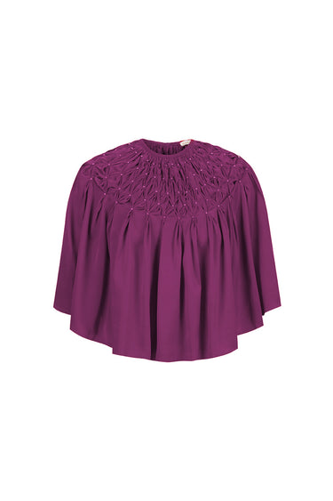 hand-smocked cape in aubergine