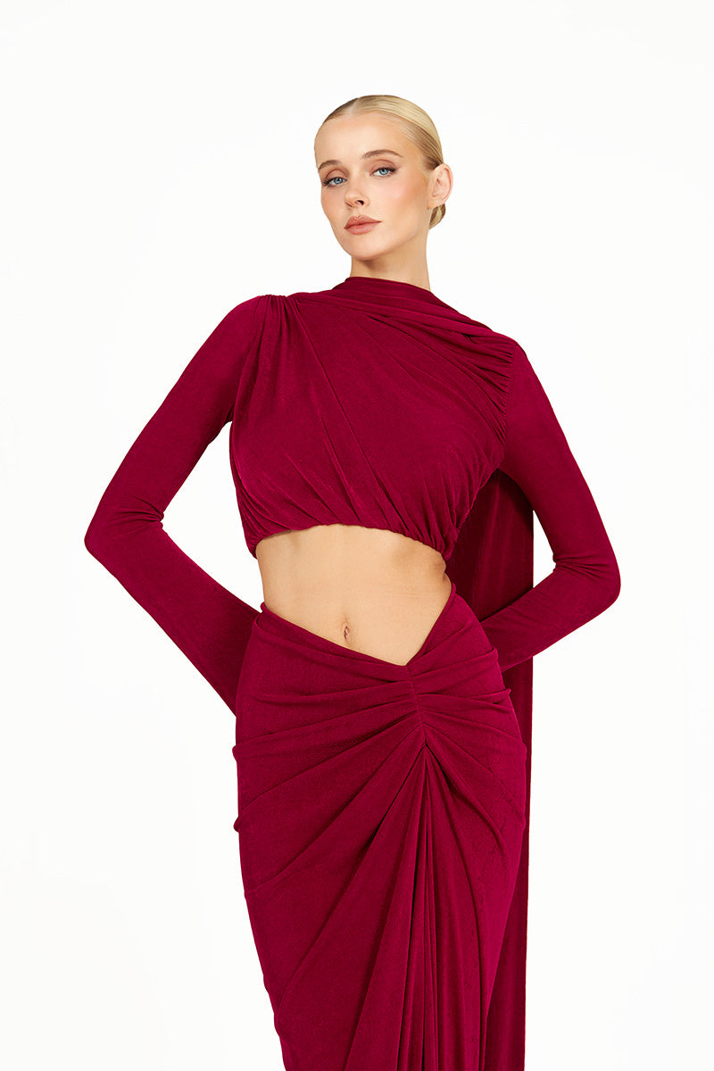 Shell: slinky textured jersey - 95% Recyled Polyester, 5% Spandex.