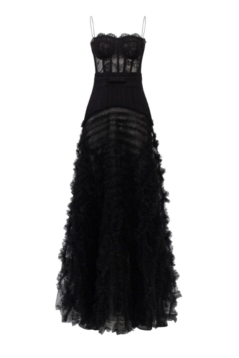 raanana black lace mixed tulle gown
