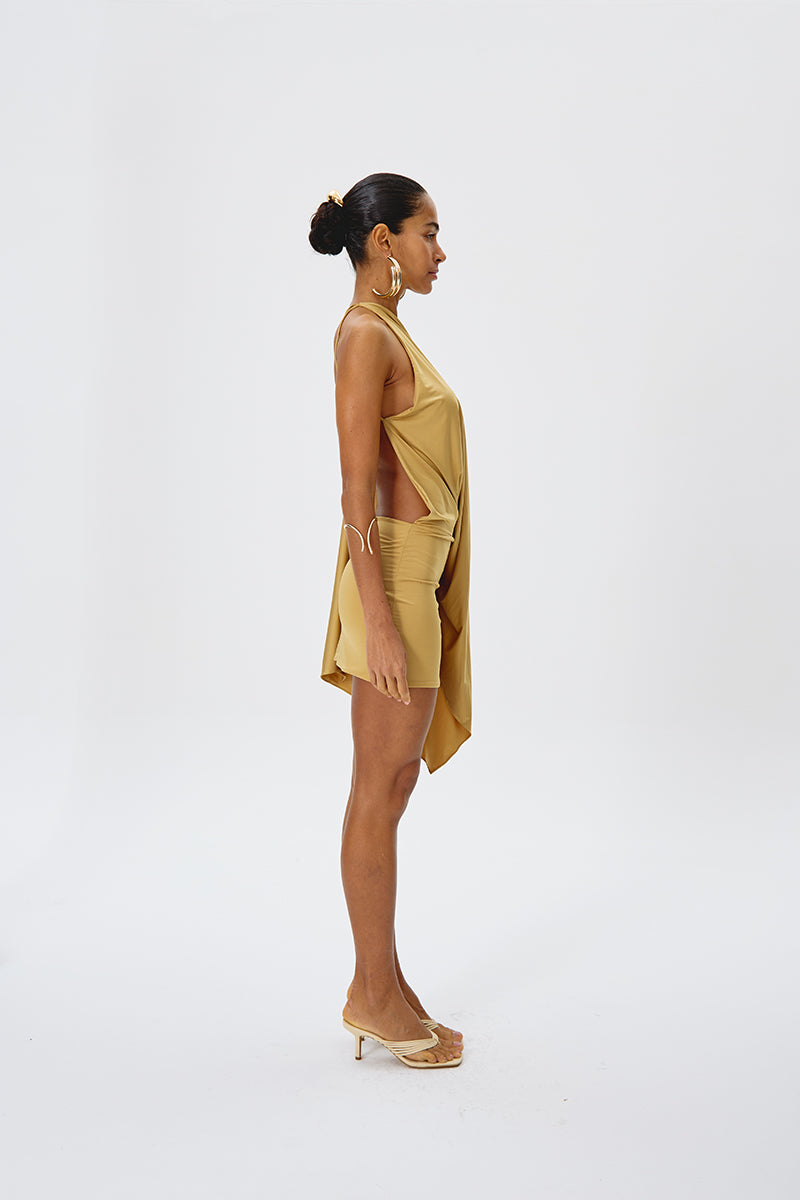 The Saudade dress provides a fluid aesthetic and movement from its shape.