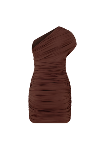 A sleek one-shoulder mini dress crafted from stretch jersey, featuring elegant draped detailing for a sculpted look.