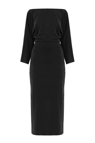 - Fluid midi length and structured-yet-stretchy knit fabric embrace the body with both confidence and comfort